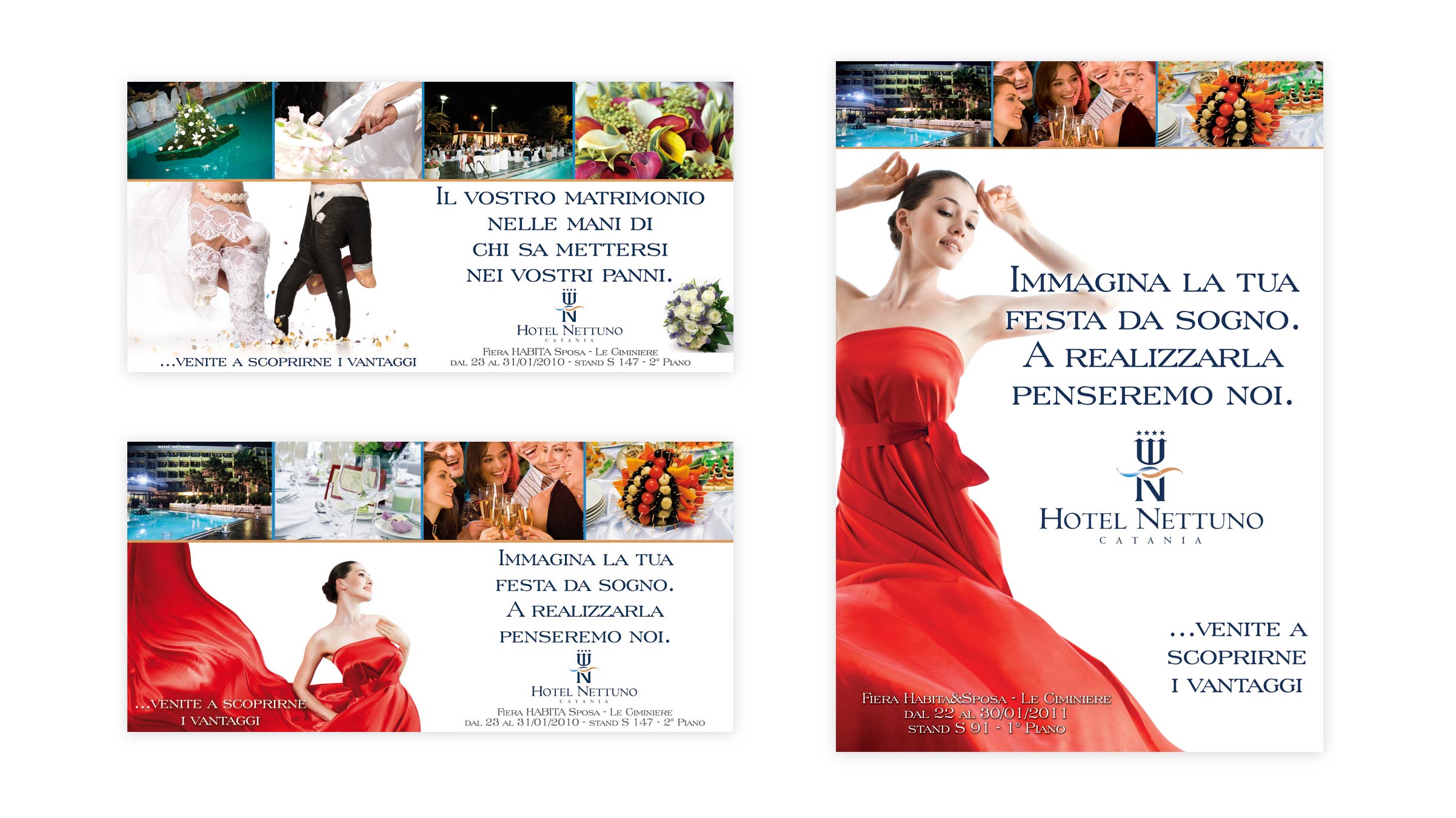 The campaign included two billboard formats — horizontal and vertical — displayed throughout the city of Catania. The creative direction, copywriting and visual layout were entirely developed by me, starting from the core idea: a pair of hands dressed up as bride and groom, symbolizing both the couple and the service provider. The Italian headline played on a clever pun: “Il vostro matrimonio nelle mani di chi sa mettersi nei vostri panni.” This line combines literal and figurative meanings — referencing both the wedding service staff (“in good hands”) and the idea of empathy (“to step into someone else’s shoes”), while also visually focusing on hands in costume. The image was sourced from licensed stock photography and then custom retouched and composed to serve the campaign.